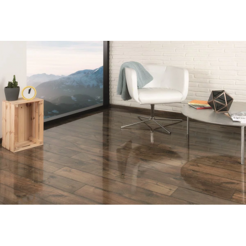 This highly polished, dark oak, laminated floor with its gleaming surface, faithfully reproduces the most exquisite features of premium quality timber, giving a natural look and feel to a room. Flooring is crucial - it sets the tone as soon as you enter a room and this floor does just that. Laid as a floating floor with no need for any bonding to your sub-floor and cleverly engineered to provide strength and stability with its high-density fibreboard core, its profiled edges enable anyone to lay this floor absolutely perfectly every single time, just like a professional would!